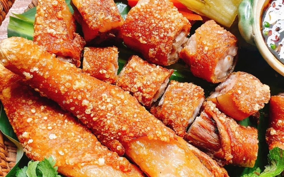Đuôi heo tươi chiên giòn gây ấn tượng bởi lớp vỏ ngoài giòn rụm, trong khi bên trong vẫn mềm béo