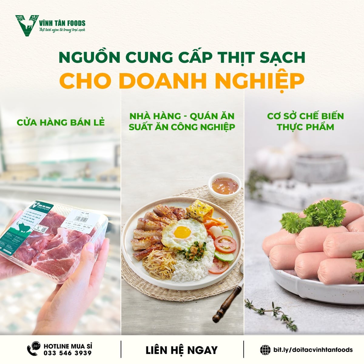 Liên hệ ngay với Vĩnh Tân Foods để được tư vấn chi tiết và nhận báo giá sỉ thịt heo tươi sống phù hợp với nhu cầu kinh doanh của bạn.